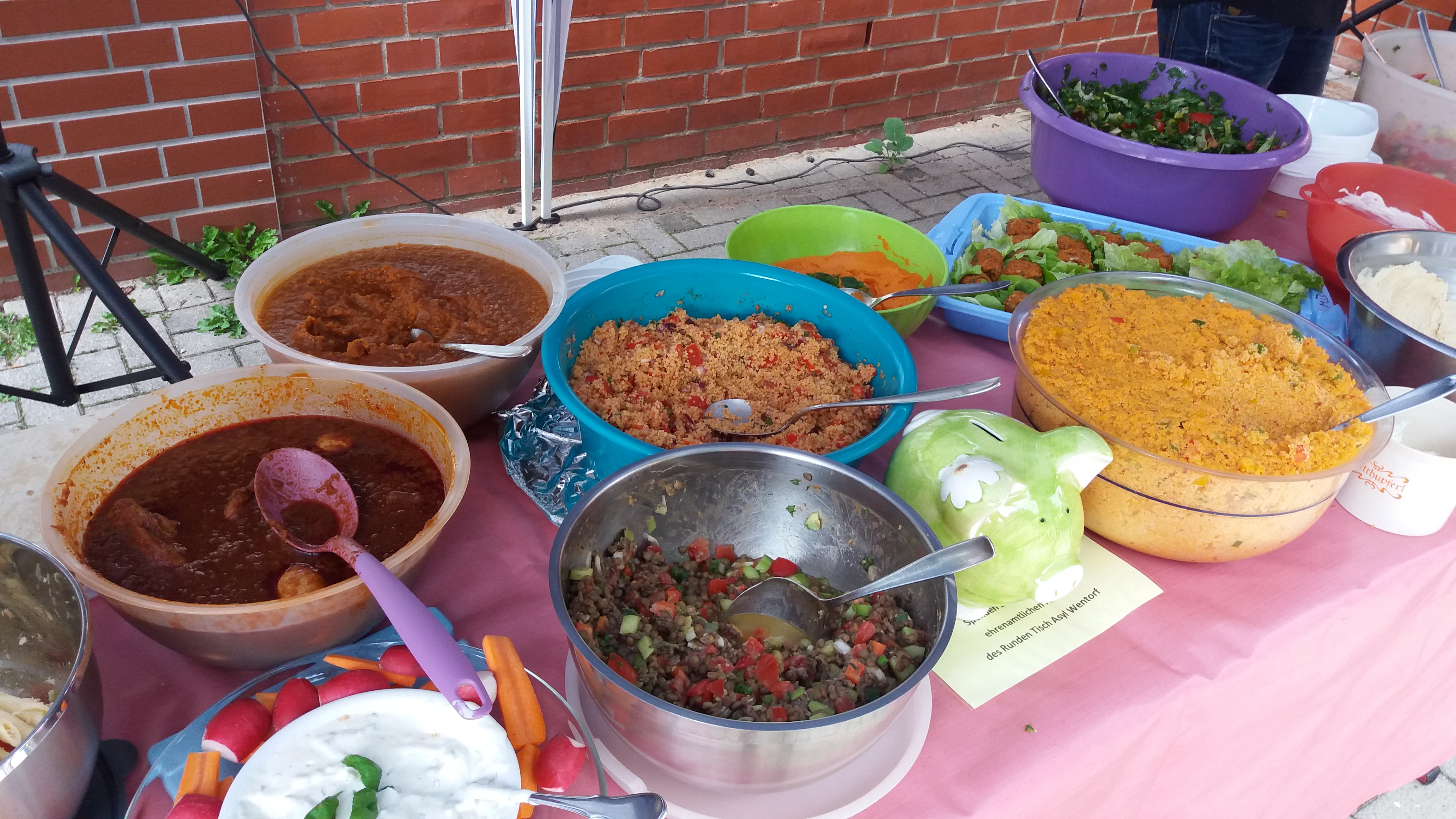 Zu unserem Buffet haben die Gäste köstliche Gerichte aus vielen Ländern beigesteuert.
