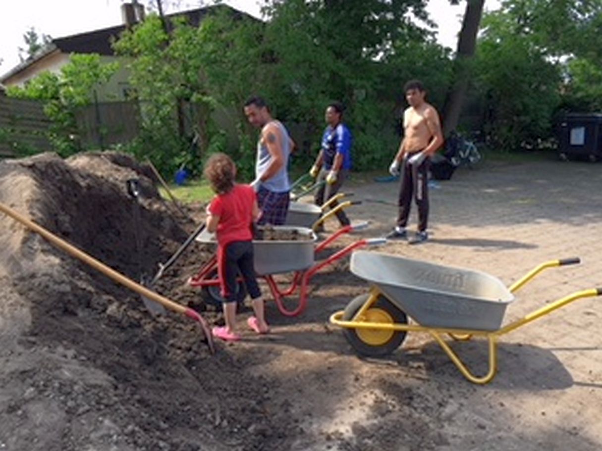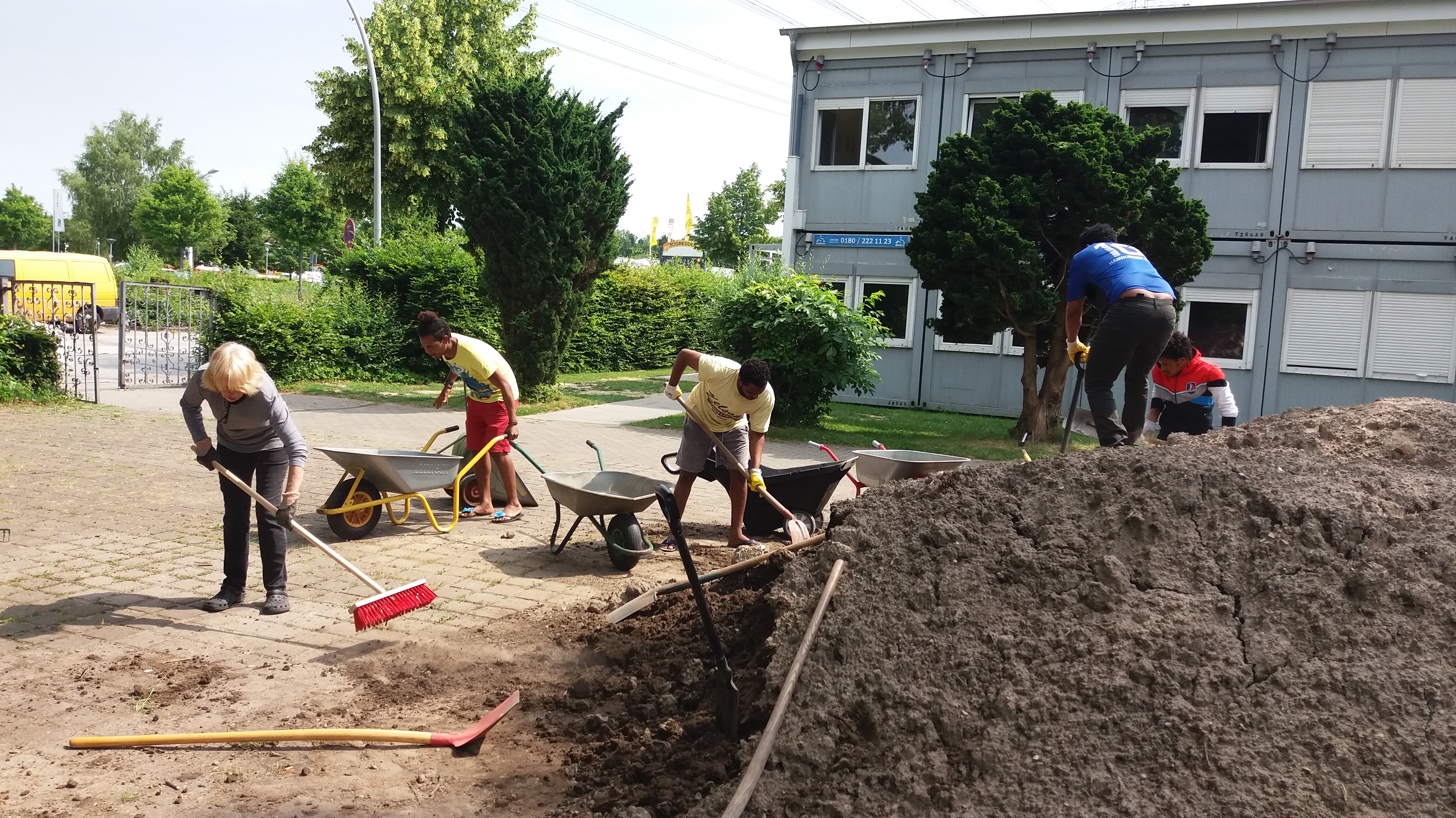 Rechtzeitig zum herrlichen Maiwetter hat der RTAW in der Unterkunft am Südring Gartenbänke aufgestellt und mit tatkräftiger Hilfe einiger Bewohner gepflanzt und gejätet, um den Außenbereich etwas wohnlicher zu gestalten.