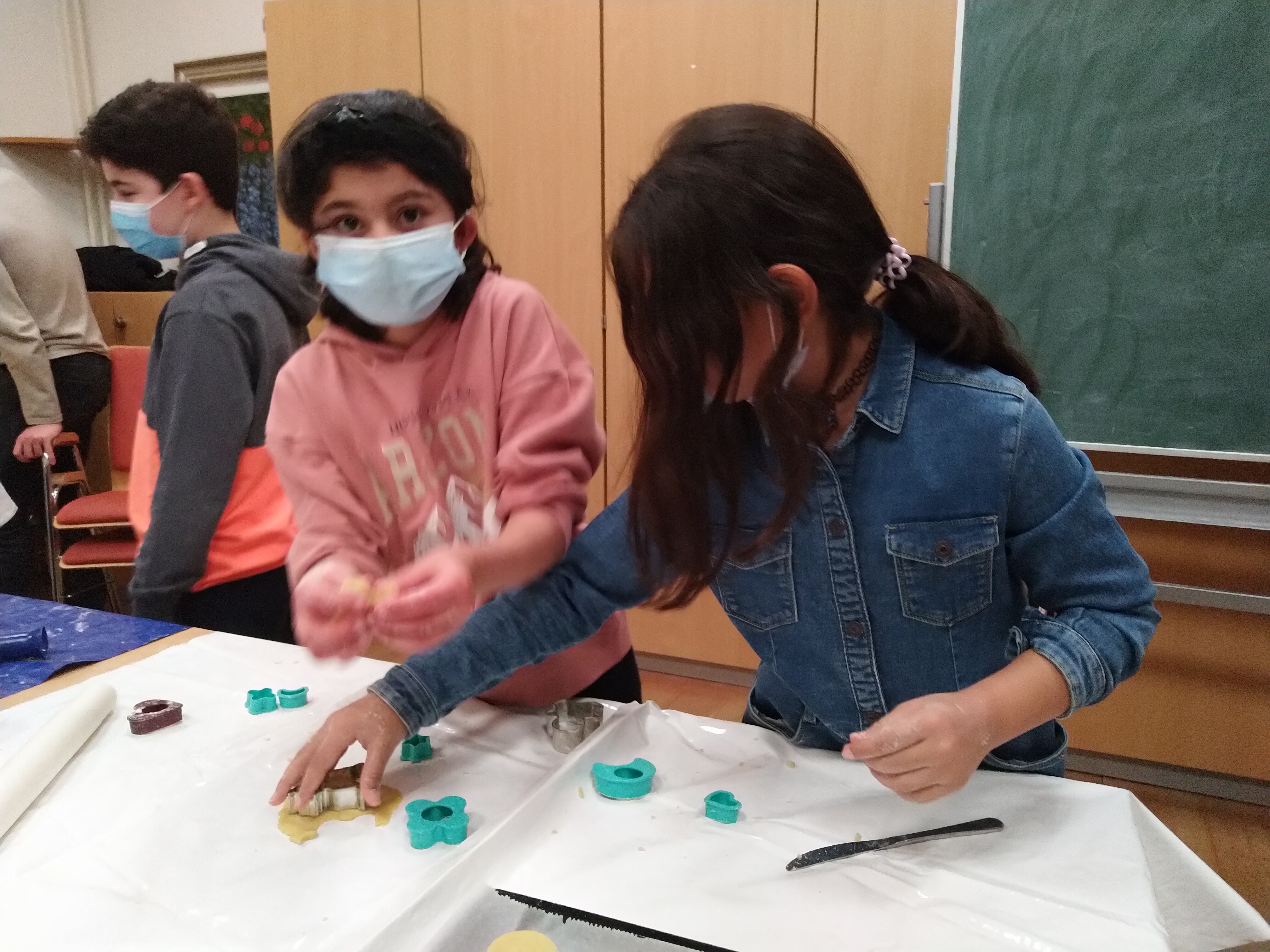 Verena hatte die nächste gute Idee und hat die Flüchtlingskinder zum Backen eingeladen. Mit einigen Helferinnen vom RTAW wurde mit großem Eifer geknetet, geformt, gebacken und verziert. Die schönsten Plätzchen werden auf dem ADVENTorfer Markt angeboten.