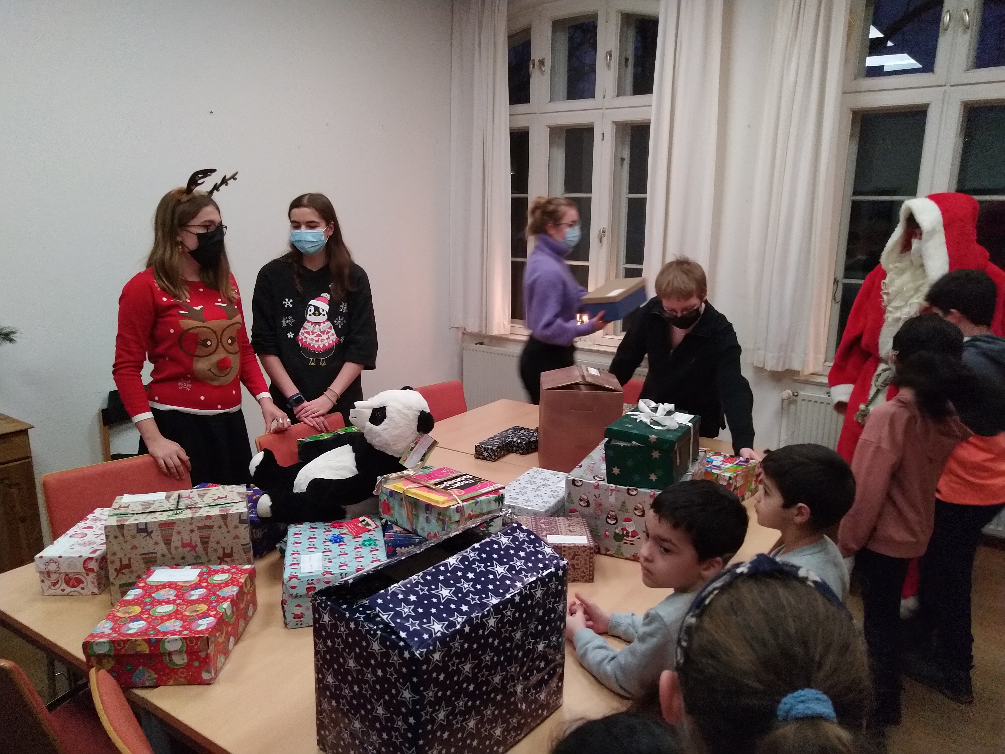 Viele tolle Helfer aus dem Wentorfer Gymnasium haben mit uns zusammen die diesjährige Feier gestaltet, sie haben mehr als 40 wunderbare Geschenke für die Kinder gepackt, der „Weihnachtsmann“ hat sie verteilt und anschließend wurden Weihnachtsplätzchen gebacken.