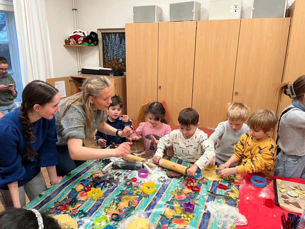 Verena hatte die nächste gute Idee und hat die Flüchtlingskinder zum Backen eingeladen. Mit einigen Helferinnen vom RTAW wurde mit großem Eifer geknetet, geformt, gebacken und verziert. Die schönsten Plätzchen werden auf dem ADVENTorfer Markt angeboten.